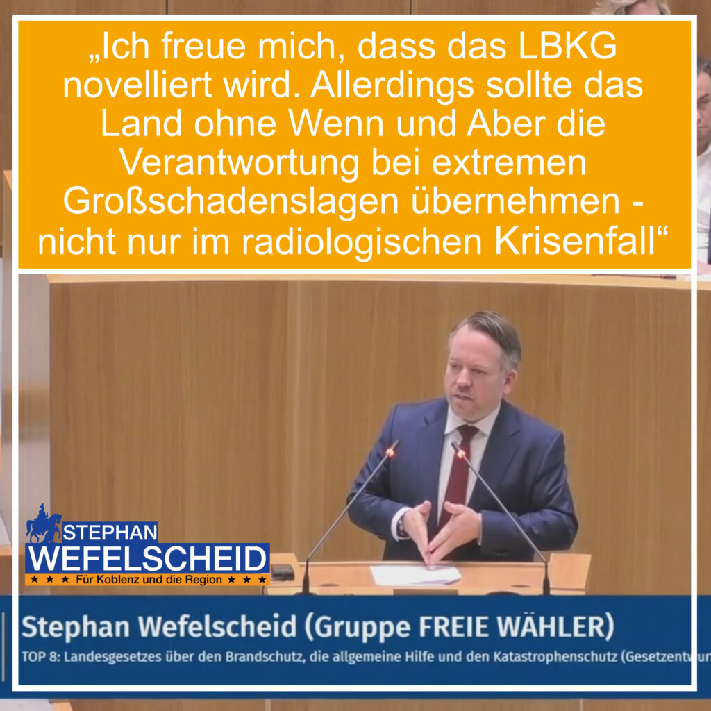 MAINZ. Den heute im rheinland-pfälzischen Landtag zu beratenden Gesetzesentwurf zur Novellierung des Landesgesetzes über den Brandschutz, die allgemeine Hilfe und den Katastrophenschutz kommentiert Stephan Wefelscheid, Landtagsabgeordneter der Gruppe FREIE WÄHLER, wie folgt: