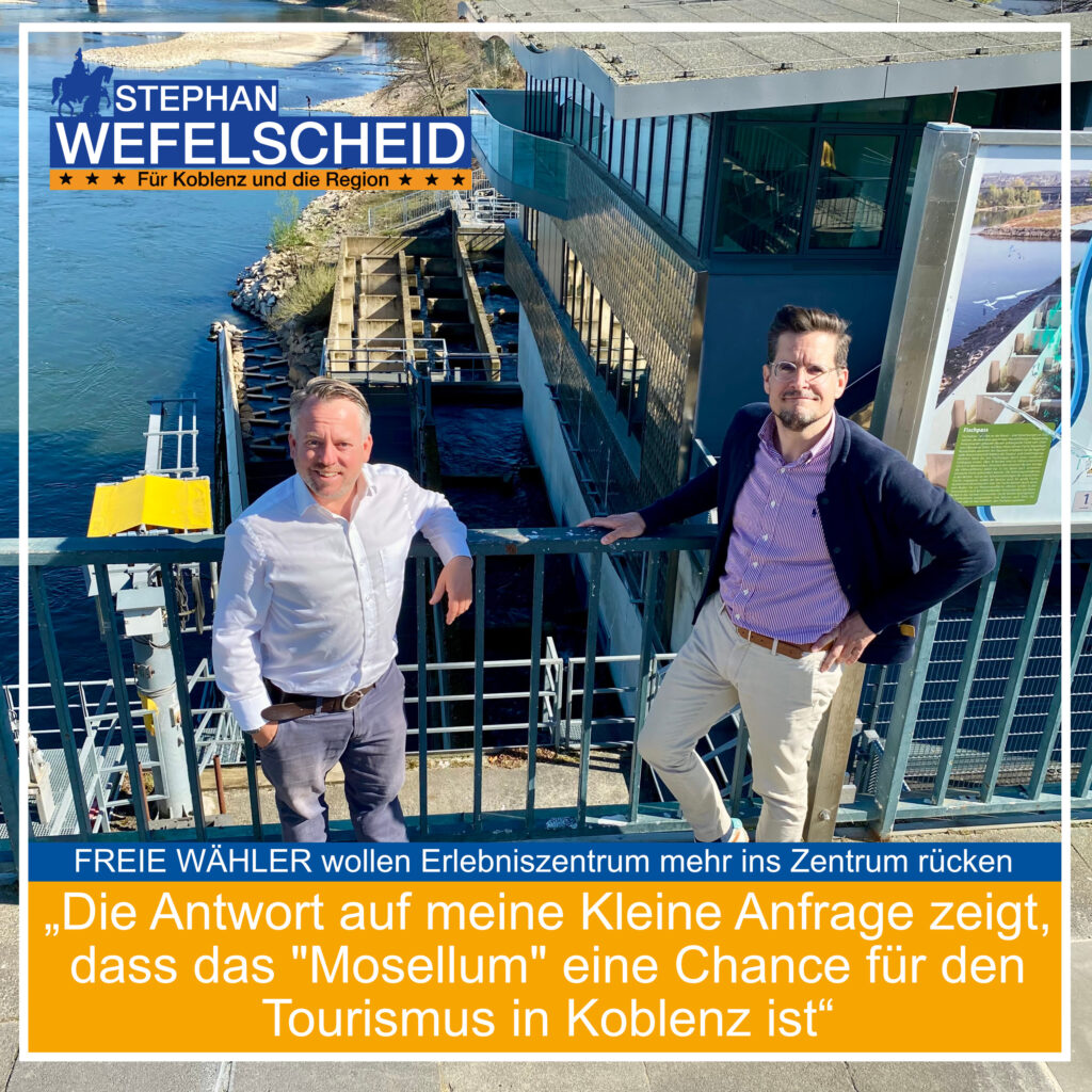 Jeden Tag passieren Fische die Fischtreppe am Mosel-Staufwehr in Koblenz und können dabei von Besuchern des „Mosellum“ beobachtet werden. Mehr Beachtung sollte die Stadt Koblenz nach Ansicht der FREIEN WÄHLER auch dem „Mosellum“ schenken, dafür setzen sich die Ratsmitglieder Christian Altmaier und Stephan Wefelscheid, MdL ein. Mit den Antworten einer Kleinen Anfrage am Landtag Rheinland-Pfalz gehen sie nun auf die Stadtspitze zu.